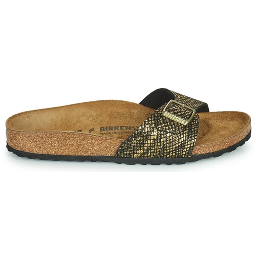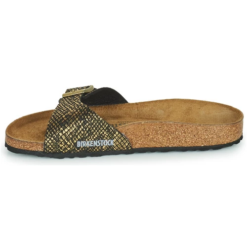 Le modèle Madrid, un des grands classiques BIRKENSTOCK, affiche un design épuré qui, dans l’univers de la mode, ne laisse personne indifférent. Il s’agrémente ici d’une structure discrète façon peau de python qui lui confère tout son caractère. Il compte également sur de subtils effets métalliques qui soulignent son look glamour. S’inspirant de la nature, chaque chaussure de ce modèle offre un design et un confort qui lui sont propres. Côté composition, sa tige a été confectionnée dans une matière en microfibre hypoallergénique.