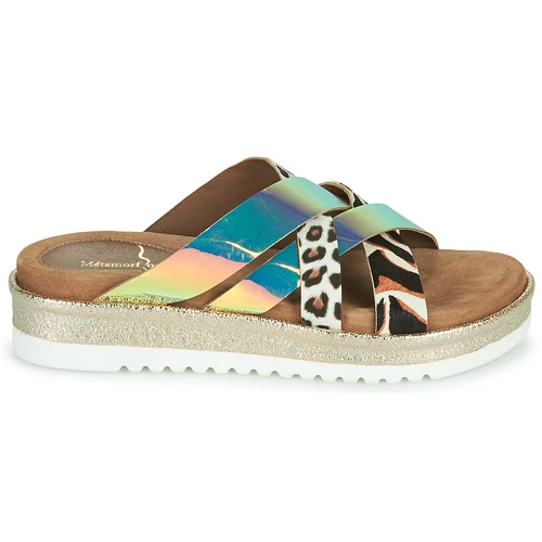 Avez-vous déjà vu une mule multicolore aussi adaptée à votre allure ? Dénichée chez Metamorf’Ose, on la fait nôtre sans hésiter ! Dans un genre décontracté et féminin, elle expose des brides fabriquées en cuir. Grâce à son talon de 4 cm, les looks prennent de la hauteur. La marque a opté pour une semelle de propreté en cuir. Un atout de taille pour avancer en confort dans la vie !