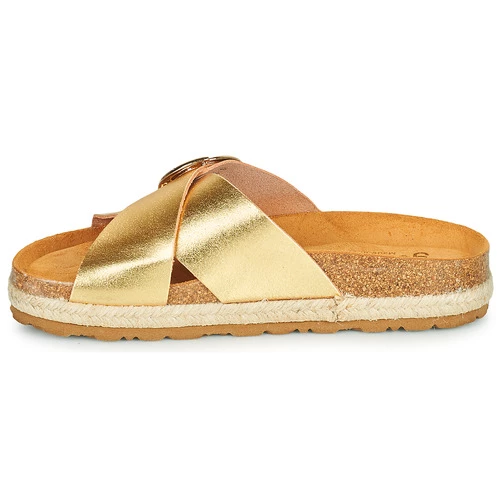 La mule est toujours aussi actuelle cette saison et YOKONO le confirme avec ce modèle au coloris doré ! Avec la Mijas, vous glissez vos pieds dans un écrin de cuir. Vous vous laisserez envahir par le bien-être procuré par la semelle de propreté en croûte de cuir . De quoi arborer une démarche légère en confort !
